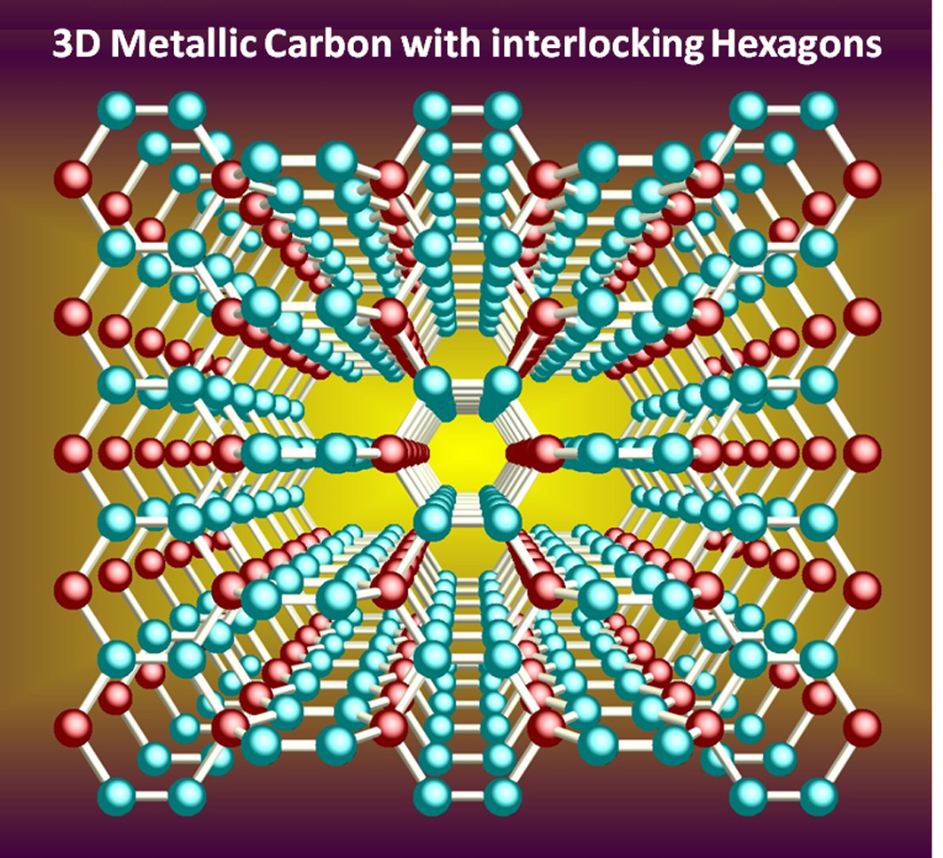 The study is titled, “Three-dimensional Metallic Carbon: Stable Phases with Interlocking Hexagons."