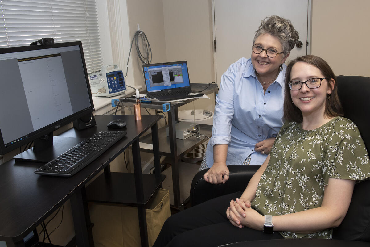 Akansha Anbil, a research assistant in the Center for the Study of Tobacco Products, is primary runner of the ethanol study. She conducts the experiments in a room with a specialized ventilation system that removes the e-cigarette-produced vapor while a participant vapes from an e-cigarette hooked up to a monitoring system.