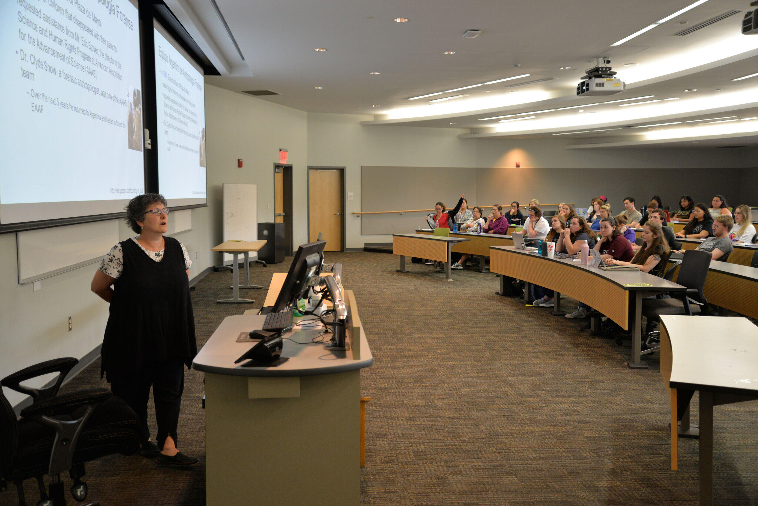 The series got underway last week with a lecture by Tal Simmons, Ph.D., a VCU forensic science professor, who spoke on “Forensic Anthropology in the Service of Human Rights.” Simmons, who is also organizing the lecture series, is an expert in forensic anthropology and has applied forensic science to human rights violation investigations in numerous cases, including in Bosnia, Sri Lanka, Kosovo and elsewhere.
