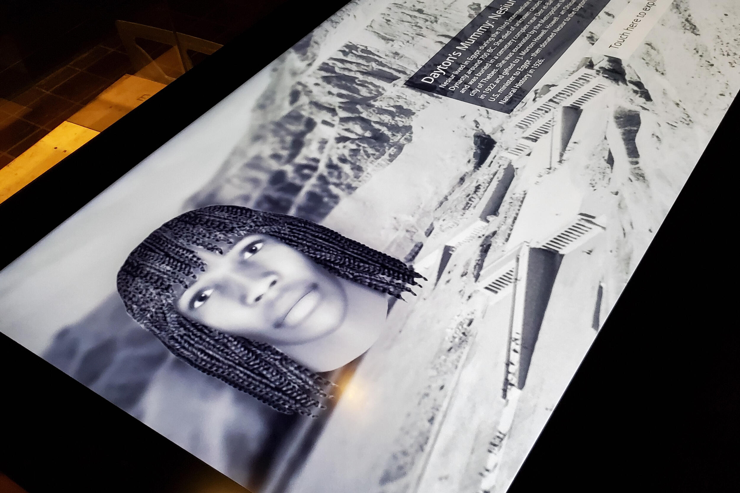 The exhibition at the Boonshoft Museum of Discovery in Dayton displays a digital approximation of the face of the mummy, Nesiur, that was generated based off CT scan data. It was created by Mason Smith, an anthropology major who graduated from VCU in December, with the help of Terrie Simmons-Ehrhardt, a faculty member in VCU’s Department of Forensic Science in the College of Humanities and Sciences.