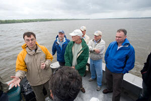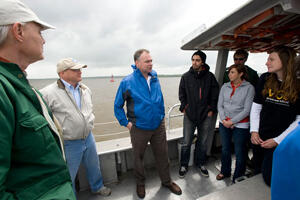 The biology students were collecting data and studying marine life in the James River during the research trip as part of the Chesapeake Bay Foundation's James River Program.