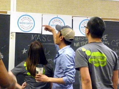 Though tired, Puccio’s group remained focused. At a 10:30 p.m. meeting, volunteers selected a new logo for the Virginia Water Safety Coalition and designed t-shirts. By midnight’s share session, the team presented visuals of their project to mentors.