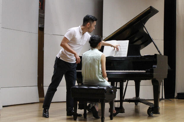 As a 13-year-old student played through Two Rhapsodies, Op. 79 No. 1 & 2 by Johannes Brahms, faculty members switched between speaking English and Chinese to make their points.