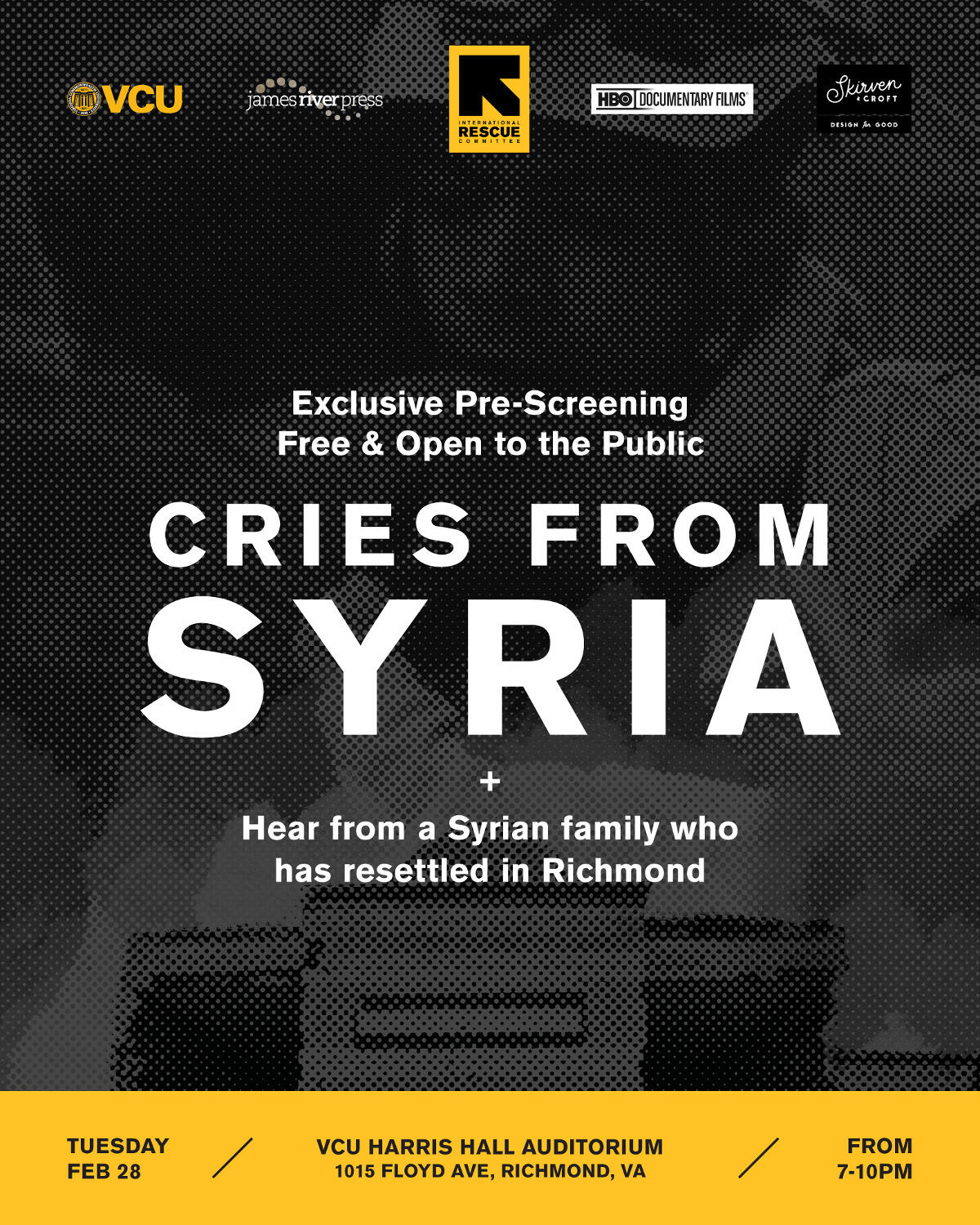 Virginia Commonwealth University and the International Rescue Committee will present a special advance screening of “Cries from Syria,” an upcoming HBO documentary about the humanitarian crisis and civil war unfolding in Syria.