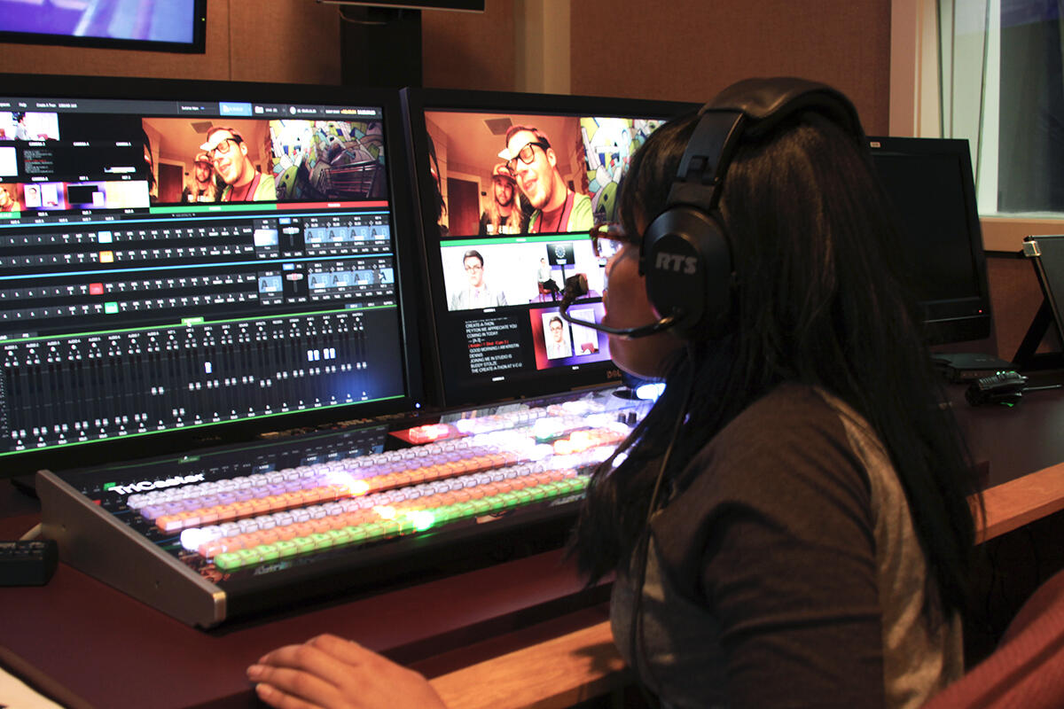 Throughout the 24 hours, a team of students continuously streamed video of CreateAthon, shooting and editing videos and interviews as the event unfolded.