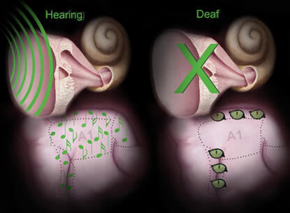 Ultimately, the team hopes this knowledge may guide the development of a new next generation of cochlear implants that will be better suited to the cross-modally reorganized brains of deaf patients. Cochlear implants can restore hearing in people who become deaf.