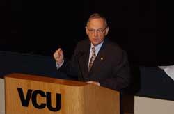 Continuing a series of lectures related to his new book, VCU President Eugene P. Trani, Ph.D., told a crowd of about 100 faculty members, students, staff and friends Thursday night that Woodrow Wilson’s attitudes toward Russia beginning in 1917 influenced U.S. Cold War policy for much of the 20th Century.