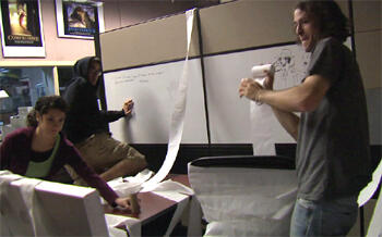 Inspired by the tone of the NBC show "The Office" ("We ... ahem … 'borrowed' the idea from them," Brazda notes), the first episode finds the students dealing with the arrival of "The new boss" — Lisa Figueroa, senior producer and recently a fellow student herself — and pondering the existence of the elusive Brazda.