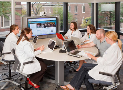 The first floor now features a wide-open student commons and cafe area surrounded by conference rooms. The second floor boasts three labs with state-of-the-art technology, expanded patient-interaction areas and a student conference room. The fifth floor houses the new Dean’s Office and Office of Admissions and Student Services.