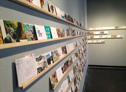 The exhibit displays postcards depicting and describing a place — physical, mental, metaphoric — that an individual can no longer access. Whether viewers choose to participate and submit a postcard or just stand back and observe, they become connected with the idea and with one another.