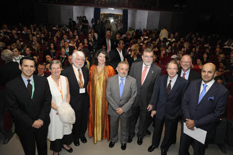 Participants in the opening ceremony of the Third Biennial Hamad bin Khalifa Symposium on Islamic Art, which ran from Nov. 2 to 4 in Cordoba, Spain, (from left to right): Michael Rao, president of VCU; Sheila Blair and Jonathan Bloom, symposium organizers and shared holders of the Hamad bin Khalifa Endowed Chair of Islamic Art at VCU; Allyson Vanstone, dean of the VCU School of the Arts in Qatar; Andrés Ocaña Rabadán, mayor of the city of Cordoba; José Manuel Roldán Nogueras, rector of the University of Cordoba; Richard Toscan, vice provost for international affairs and dean of the VCU School of the Arts; McKenna Brown, executive director of the Office of International Education at VCU; and Abdulla Al-Thani, vice president of education for the Qatar Foundation.