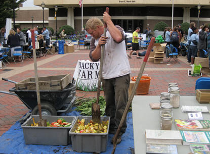During the event, students were able to sample free food while crowds gathered for Segway tours. Among the exhibitors present, Clark Lovelady and Tim Adkins of Backyard Farmer, a sustainable agriculture and landscaping company, demonstrated how they take food waste from a local market and process it into compost for future fertilization use.