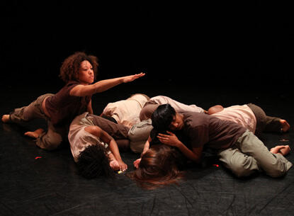 Seven students in the VCU Department of Dance and Choreography recently completed a full rehearsal of “Shelter,” the dance they will be performing this week for the annual VCU Dance NOW concert. The students tackled the rigorous 22-minute work for a small audience that included Jawole Willa Jo Zollar, “Shelter’s” choreographer, who was visiting for a week of practice. Following the climactic sequence that ends the dance, several of the students began to cry, spent from the emotional demands of what they had done.