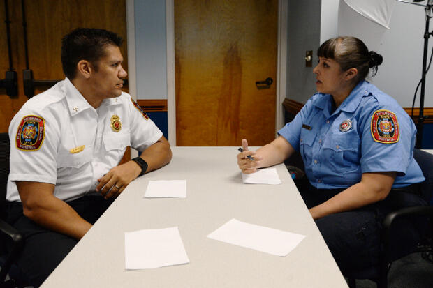 Gibson and Mary Beth Heller, Ph.D., an assistant professor and director of the Center for Psychological Services and Development in the Department of Psychology in the College of Humanities and Sciences, led a two-day training session last week at the fire department’s headquarters that taught 24 firefighters how to serve as an effective peer supporter.