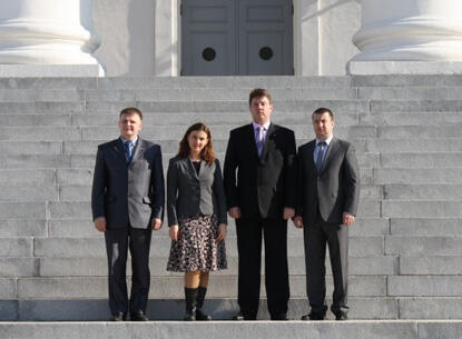 The delegation came from the oblast (state) of Tver and consisted of Mikhail Sergeyevich Musatov, a deputy on the Staritskiy District Council; Artem Zakidinovich Osmanov, a member of the Council of Deputies for the town of Rameshki; and Sergey Olegovich Sokolov, a deputy on the Vesyegonsk District Council. They were accompanied by facilitator Olga Vladimirovna Safronova, who is fluent in English.