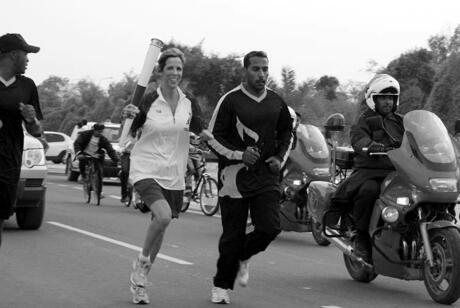 Nancy Fawley, a reference librarian at the Virginia Commonwealth University School of the Arts in Qatar, carries the torch for the 2006 Asian Games in Doha, Qatar. VCU-Qatar performed extensive design work for the games, which featured athletes from 45 countries in competition between Nov. 28 and Dec. 15.