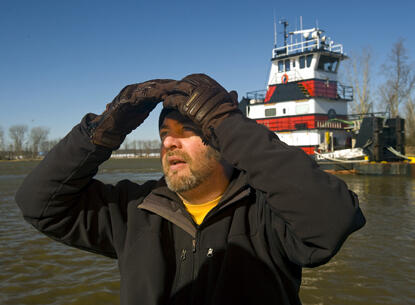 Greg Garman, Ph.D., director of VCU’s Center for Environmental Studies and research director of the Rice Center, watched intently from a small boat as the reef was being formed.