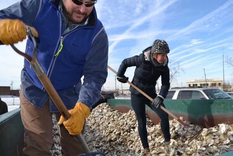 Feature image at top - Volunteers shovel oyster shells collected at Richmond restaurants and events last year as part of oyster restoration efforts. A similar program is launching in Charlottesville.