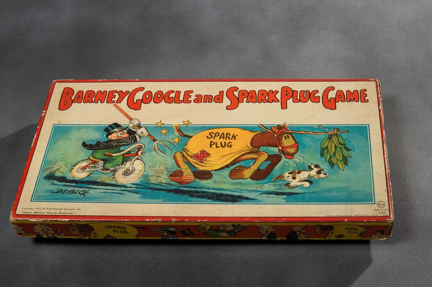The Barney Google and Spark Plug board game, circa 1923, is part of the Comic Arts Collections’ items related to Billy DeBeck, a famous newspaper comic strip artist in the 1920s and ’30s who created the character of Barney Google, who was extremely popular in those decades.