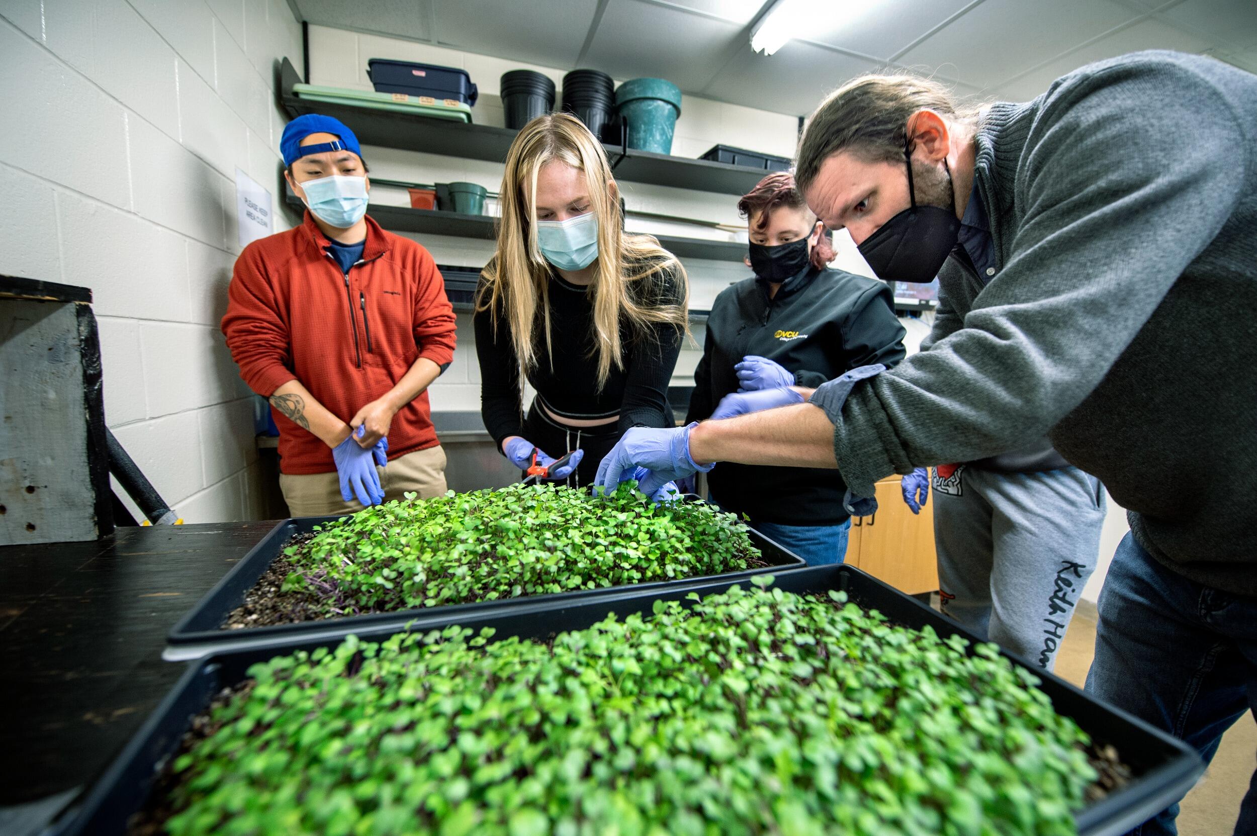 In his Urban Food Production class, students grow microgreens, seedling versions of vegetables that can be harvested 10 days after they are planted.