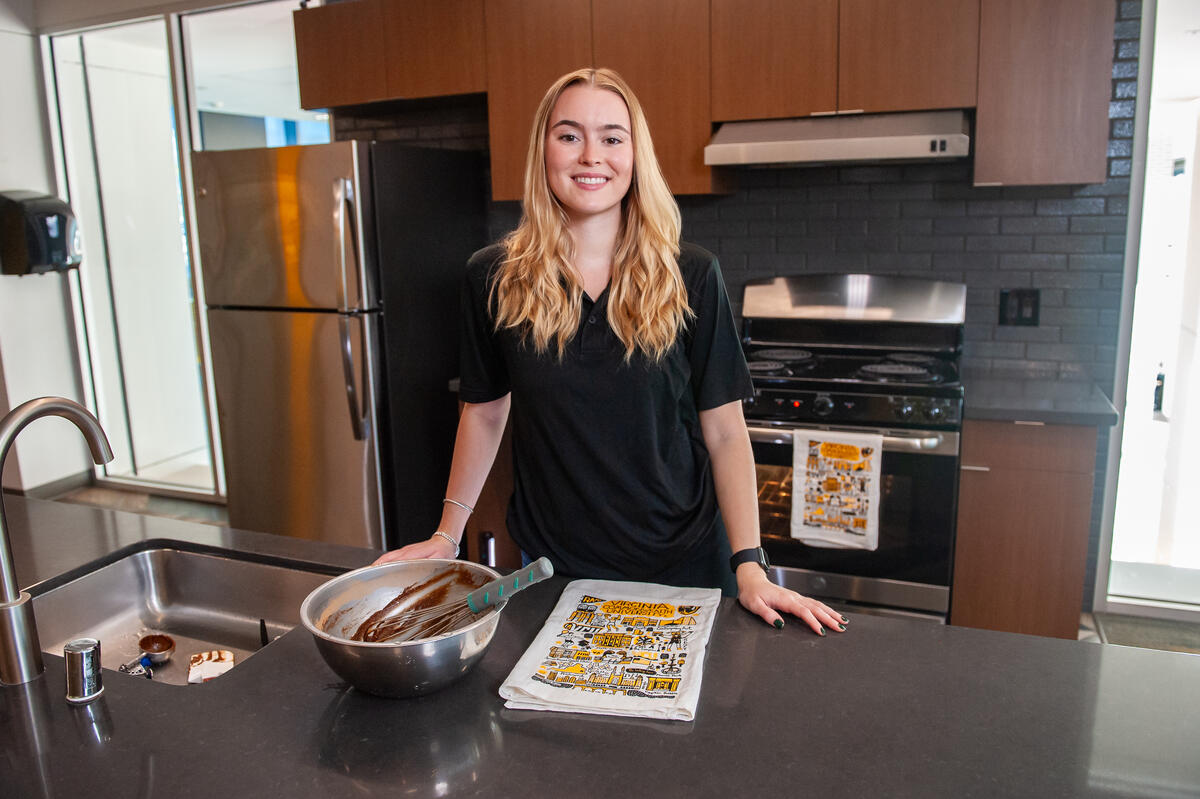 So she crafted some amazing Black and Gold Flourless Pumpkin Brownie Bites that can be varied to suit many tastes and dietary needs. But before you tie on your apron and explore Taylor’s recipe below, get to know her a bit more – and how she helps VCU students make the most of their college culinary experience.