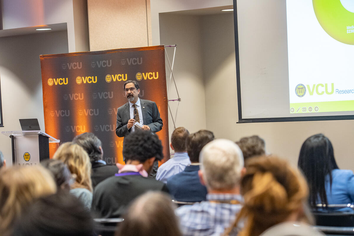 Rao’s presentation detailed how VCU research is innovative, collaborative, ambitious and impactful. He praised the growth of undergraduate students in research as well as the investment in shared facilities that propel research. He highlighted many achieving faculty by name. He noted how the number of VCU startups exceeds the national average for universities, with startup accelerators giving faculty and students a leg up in research and business creation, along with real-world experience.