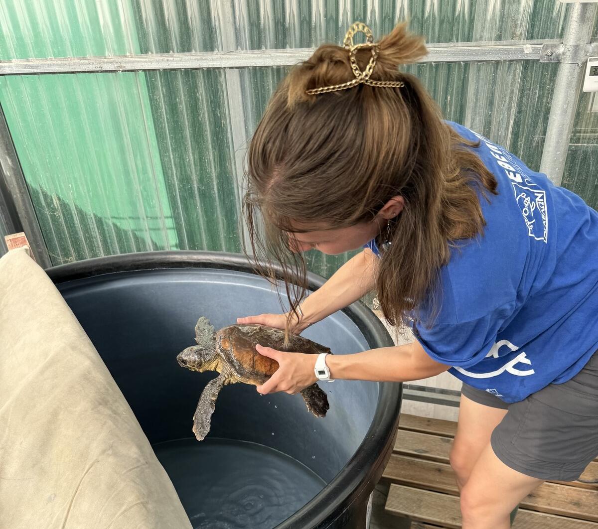 “We worked with 26 turtles, mostly loggerheads,” said Asnicar, who is majoring in environmental studies in VCU Life Sciences. “While I was there, I got to see three of the turtles go back in the ocean. That was really special to see.”