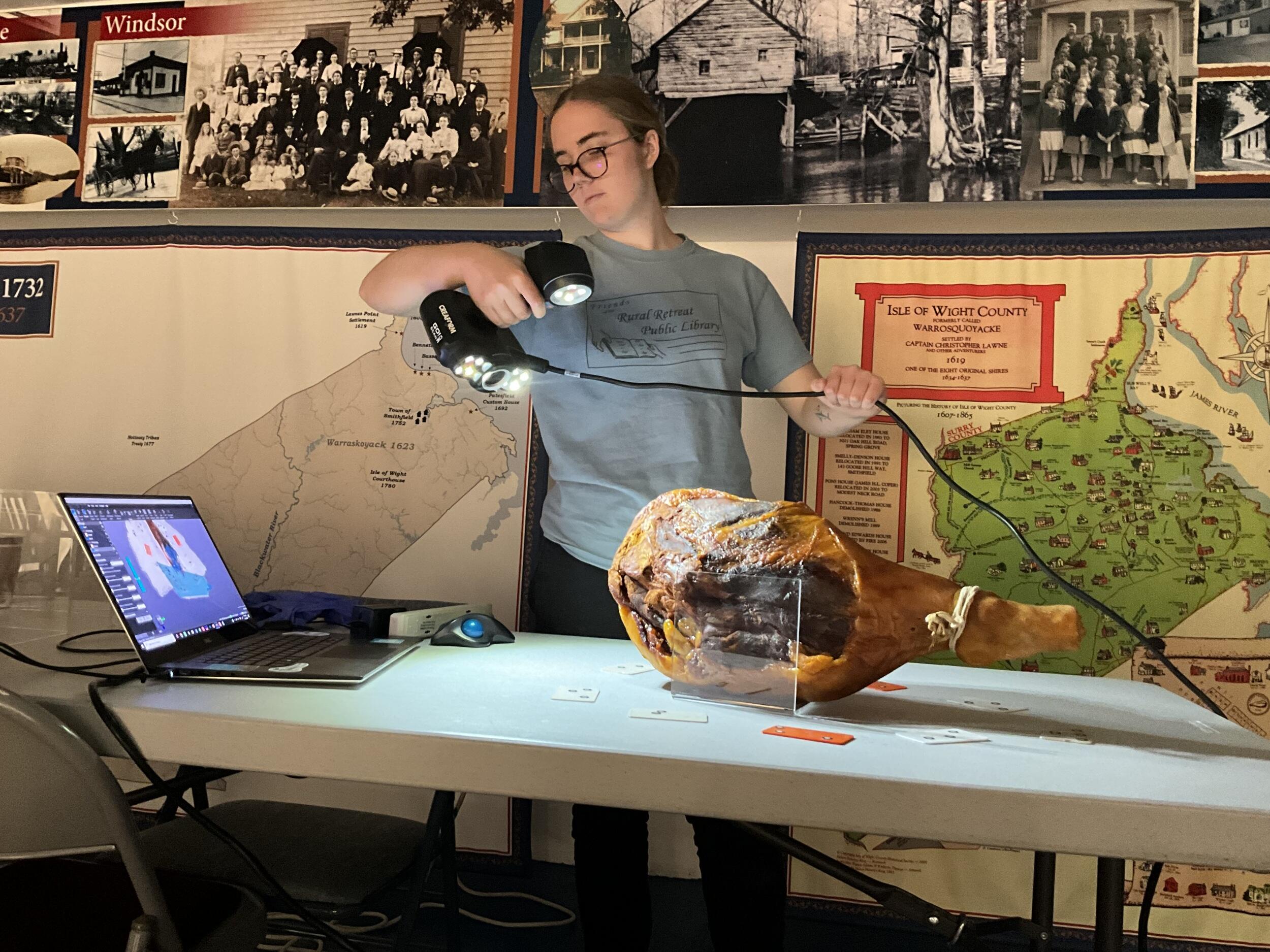 “Scanning is a wonderful tool for museums,” said Jennifer England, director of the Isle of Wight County Museum. “It enables us to print objects for visitor interaction, thereby giving them a tactile experience where there normally would not be one. It is also a wonderful way for museums to study objects. Since our hams are organic materials, they will change over time through processes such as dehydration. Scanning them means that we can rescan them later to detect change.”