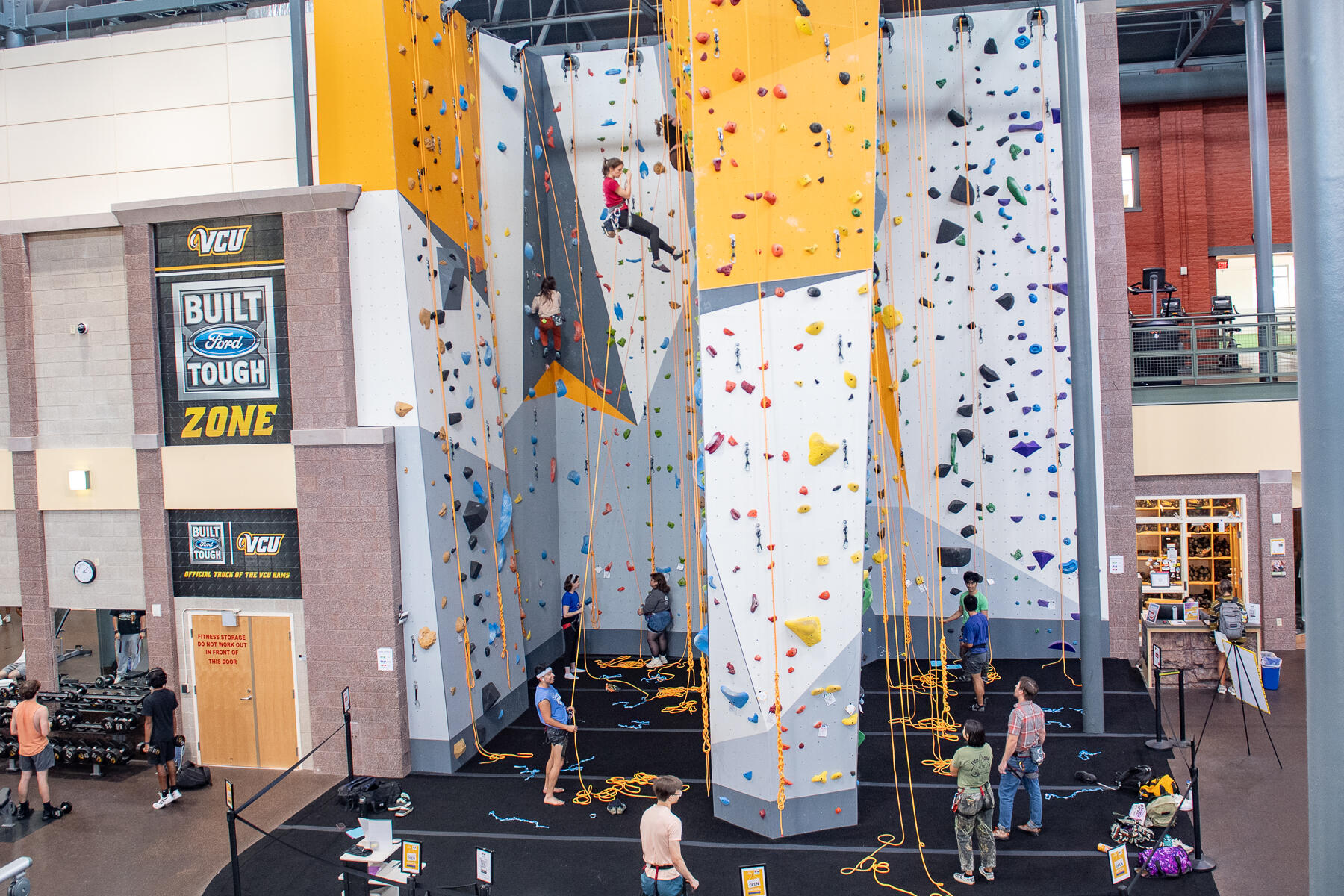 Speaking of hubs, students will notice some changes at several popular spots on the Monroe Park Campus. The Cary Street Gym has a new rock-climbing wall, which has tripled in size from the previous climbing wall. With more than 4,000 square feet of climbing surface and 22 climbing lanes, it can accommodate 66 climbing routes and has advanced features that allow the Outdoor Adventure Program team to teach advanced technical rock-climbing skills. For those who want to keep their feet on the ground, The Commons boasts a new mural painted by communication arts student Reese Bedinger. And the Student Media Center, home to The Commonwealth Times, WVCW Radio and more, has moved from Broad Street to new space inside the Cary and Belvidere Residence Hall at 301 W. Cary St.