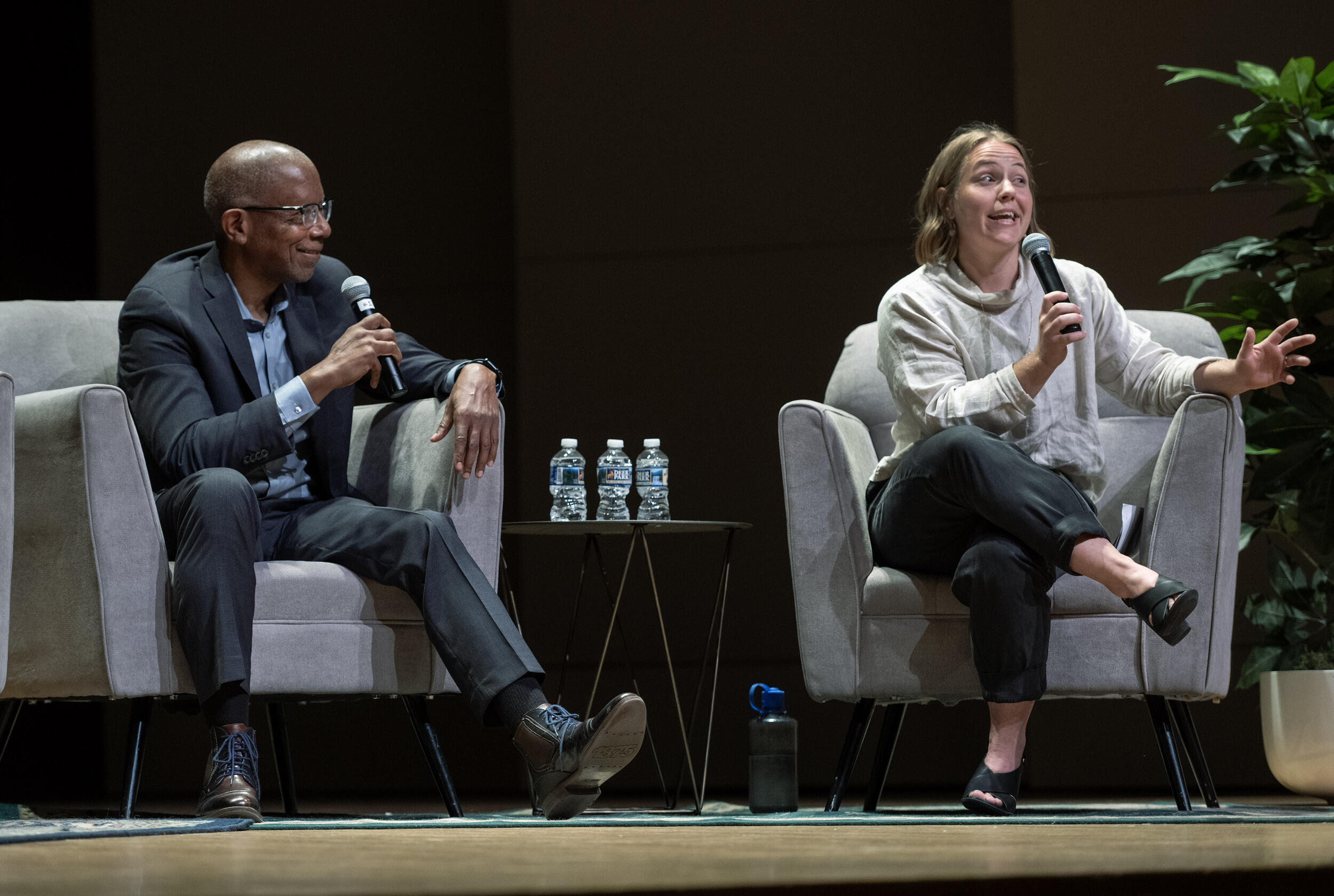 University College’s Department of Focused Inquiry teaches the Common Book in its UNIV 111 and 112 sections as a required text. Williams and Noe-Payne visited two Focused Inquiry classes earlier Wednesday as guest speakers and encouraged students to embrace difficult and honest conversations during and after their college years.