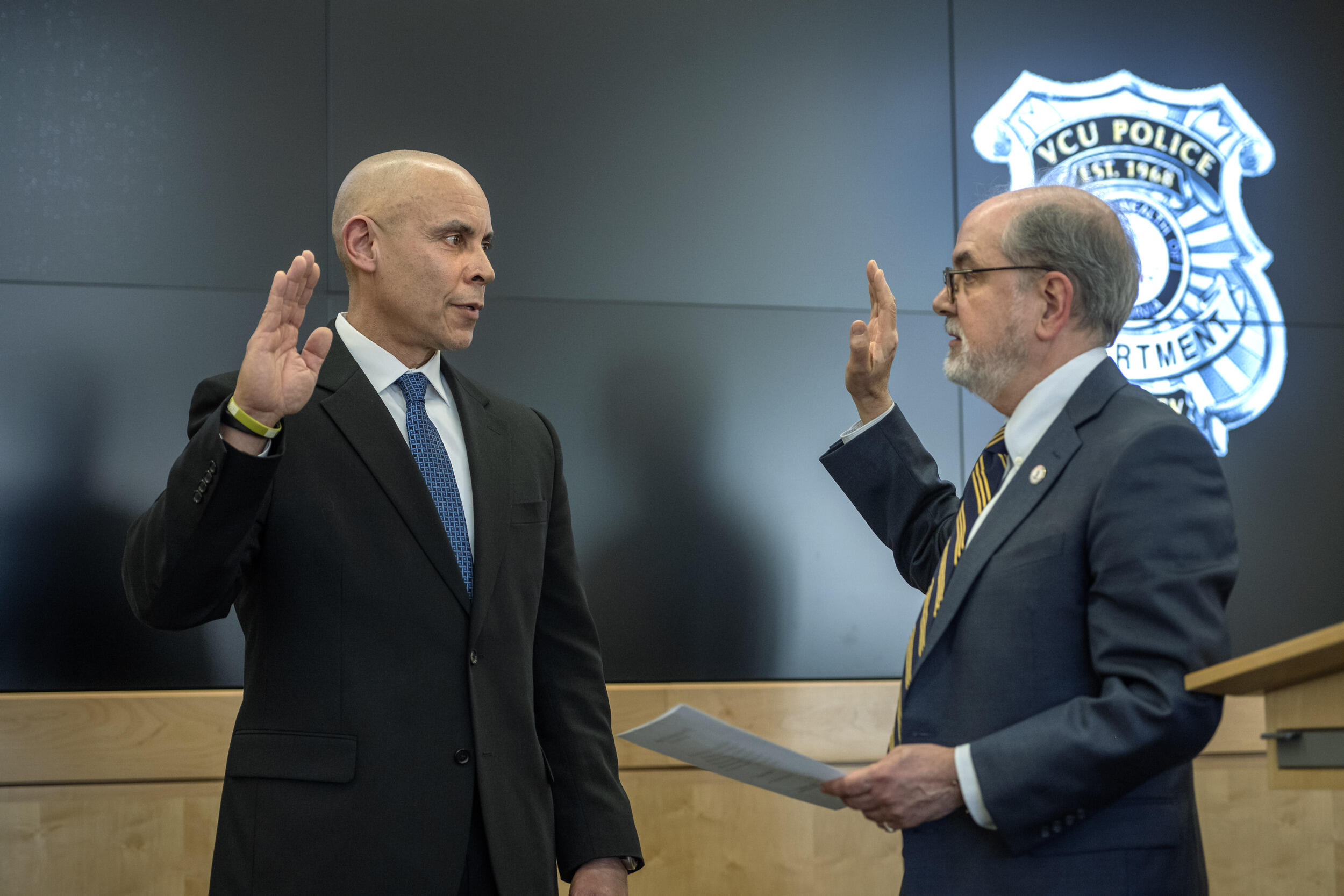 Vowing trustworthiness and respect, Clarence Hunter is sworn in as new chief of VCU Police