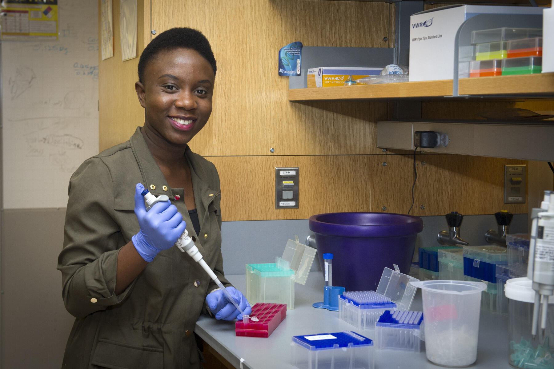In just four months Oyelayo says she has learned how to operate unaided as a lab researcher, performing all of her assigned experiments without supervision. “Sometimes you can’t follow protocols and you need to tweak the experiment,” she said. “But it’s a fist-pump moment when you finally get it right and can move on to the next step.”