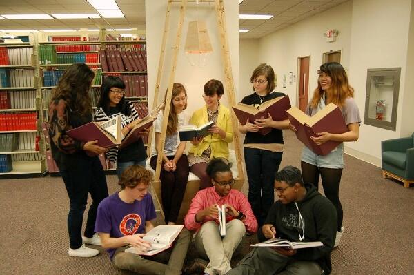 Cabell Library's newest art installation is the work of five Art Foundation students in a class called Space Research. The students were challenged to design and build bookshelves, each with a similar function and a unique artistic vision. The shelves are on display throughout the library, through Dec. 5.