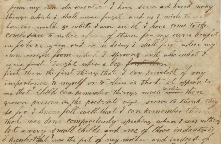 The text, which begins without a capital letter and ends without a period, was written in 1847 and differs from other slave narratives because of the unique position Cook was in when he wrote it. Unlike other, more famous accounts of life in slavery like “Narrative of the Life of Frederick Douglass, an American slave” or “David Walker’s Appeal,” “A Scetch of My Own Life” focuses more on Cook as an individual than on the institution of slavery.