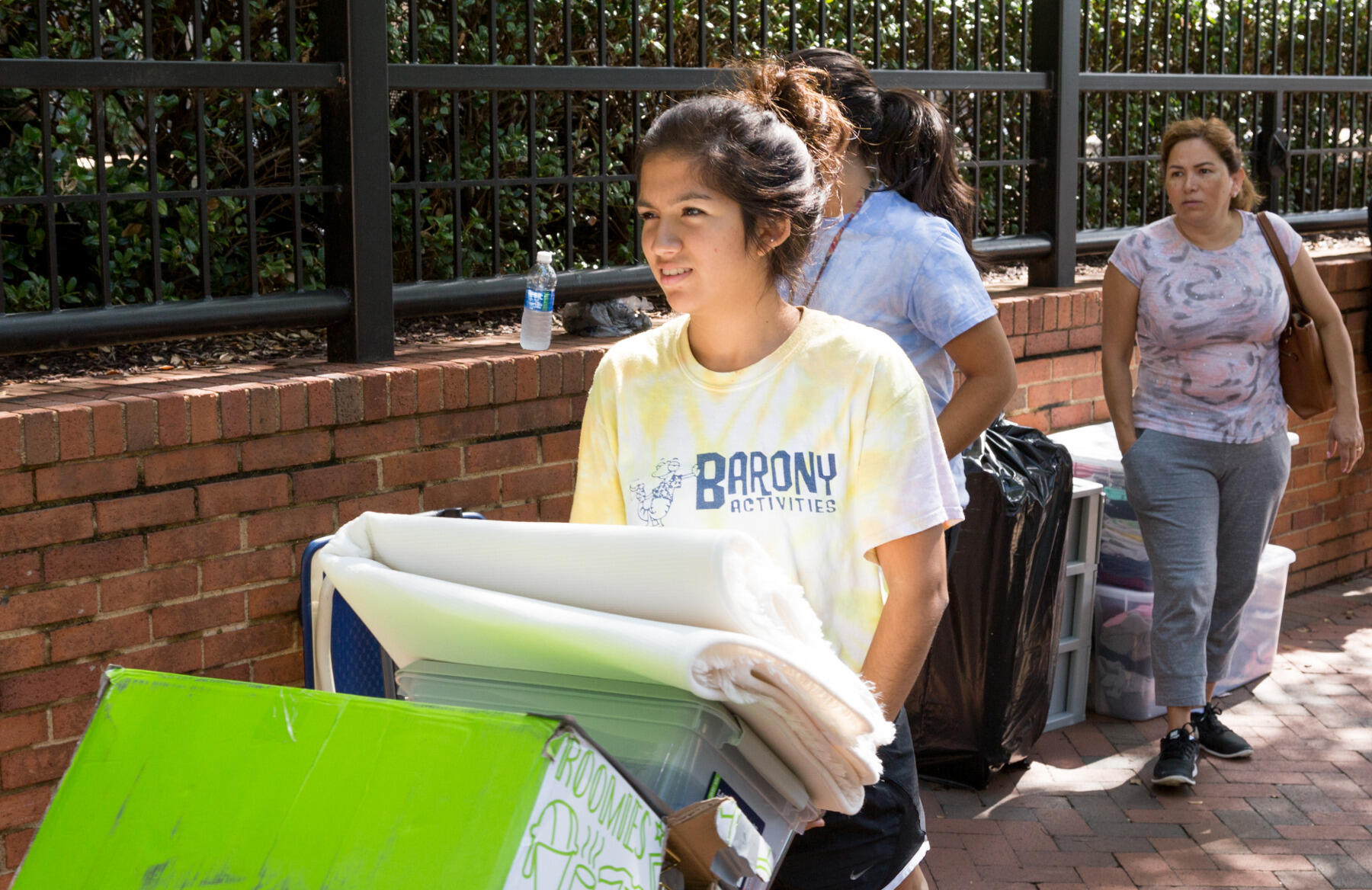 Spirits were high as the newest Virginia Commonwealth University students moved into their new homes in Brandt and Rhoads halls on the Monroe Park Campus on Saturday. Rodney the Ram posed for selfies, VCU Police officers kept traffic tempers calm and dozens of staffers from Student Affairs and Strategic Enrollment Management kept the process moving like clockwork.