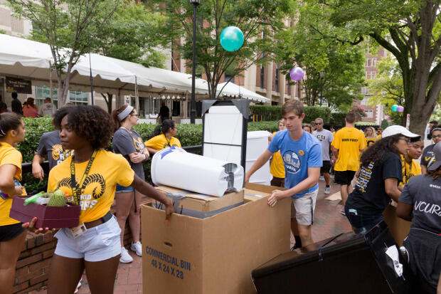 A swarm of volunteers surrounded every car or truck that rolled up to 710 W. Franklin St. A dorm room worth of supplies was swiftly moved to the curb, then loaded into a huge cardboard box on a roller to go upstairs.