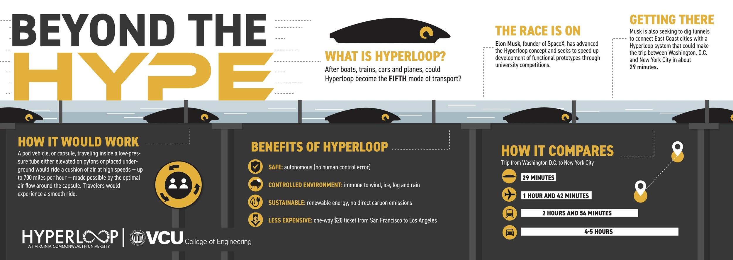 For the past 10 months, Hyperloop at Virginia Commonwealth University has been beating the odds and beating the clock in a dash to build the best high-speed pod vehicle to race at Elon Musk’s 2018 SpaceX Hyperloop Pod Competition in Hawthorne, California. A Hyperloop is a sealed tube free of air resistance or friction through which a pod vehicle travels at ultra-high speeds.