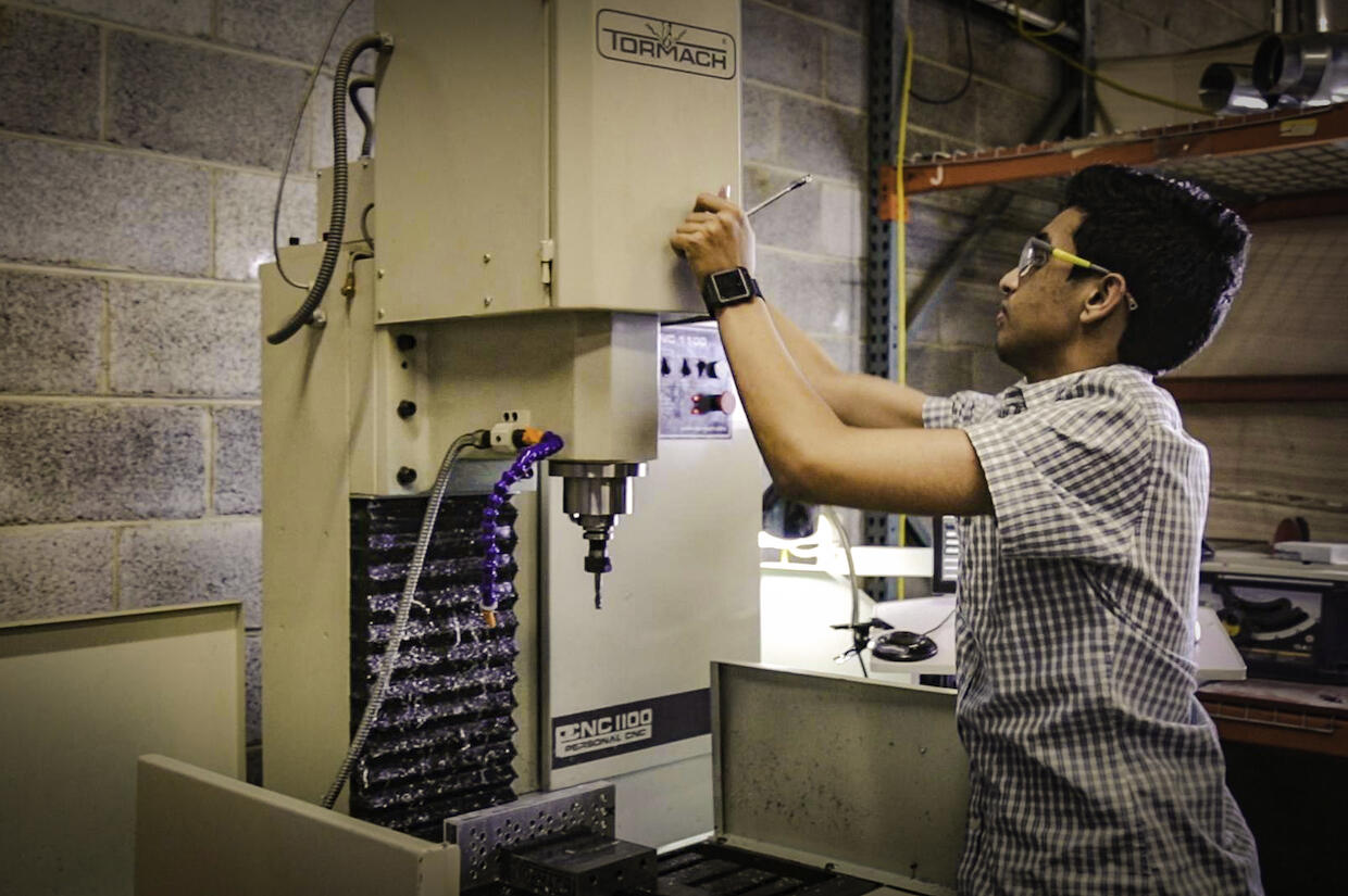 At 6 p.m. on the most beautiful Saturday in June, five sleep-deprived students hunch silently around a table as a fluorescent light hums overhead. A wrench or drill occasionally cuts through the quiet. But there are few words. Like athletes or surgeons, they know the task — and each other’s rhythms — well enough to speak in the shorthand of nods, gestures and eye contact.