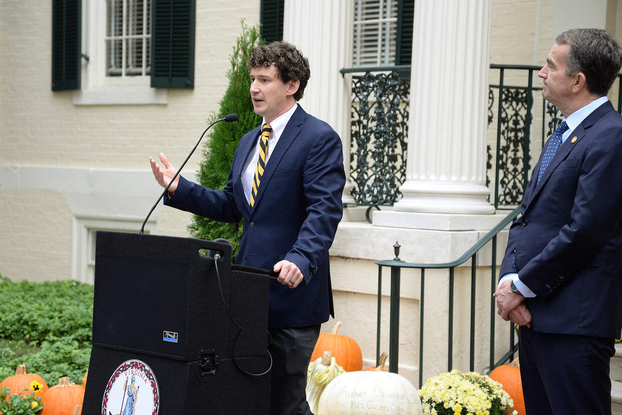 Staff, members and supporters of Rams in Recovery — VCU’s collegiate recovery program — joined Gov. Ralph Northam, M.D., first lady Pamela Northam and other officials outside the Governor’s Mansion Wednesday morning to announce the grant.