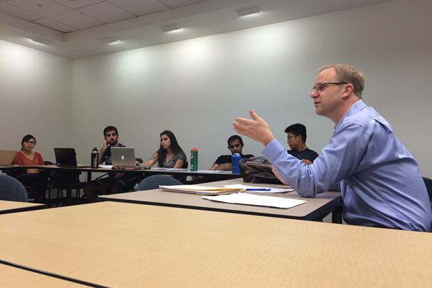 Derek Johnson, Ph.D., a biology professor at Virginia Commonwealth University, sat at the head of his class, role-playing as the head of the Centers for Diseases Control, probing the response to the Ebola case in Texas. Johnson's students played the role of CDC experts on infectious diseases.