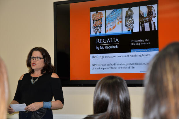 These unconventional accents are Regulinski’s artistic expressions that depict her lifelong battle with diabetes. In a presentation to the Children’s Hospital of Richmond at Virginia Commonwealth University’s (CHoR) Center for Endocrinology, Diabetes and Metabolism team, Regulinski exhibited and discussed her clothing pieces as a way to bring awareness to diabetes and diabetes education, particularly for children. She named the clothing series “Regalia: Healing Avatars,” a nod to the popular anime series and a visual expression of the word avatar, meaning in this case an embodiment of a view of life.