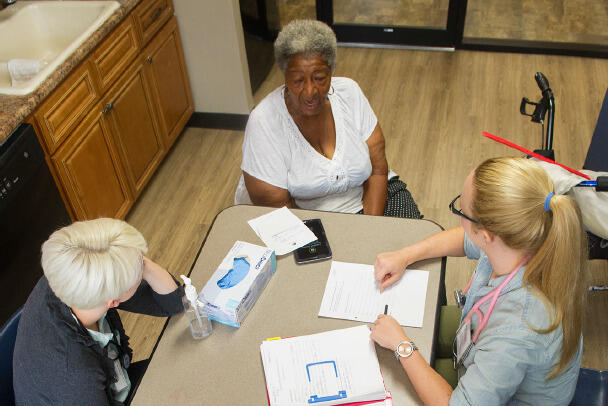 Feature photo at top: Nurse practitioner and pharmacy students work with a resident of Dominion Place. Photo provided by Sierra Alewine.