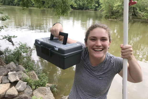 Rachael Moffatt, a senior environmental studies major, is serving as the James River Association’s water quality intern, a role in which she is coordinating the association’s 66 trained citizen-scientist volunteers — known as the “James RiverRats” — and supporting their work to collect samples and upload data on a weekly basis.