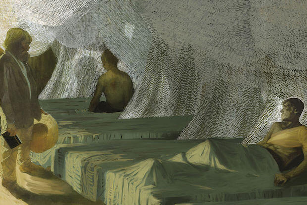 Alcorn: The creative processes I employ as an illustrator involve confluence of research followed by the creation of preliminary preparatory studies, followed by a series of further articulated and increasingly refined studies, which in turn led to the creation of 21 oil-on-canvas paintings.
