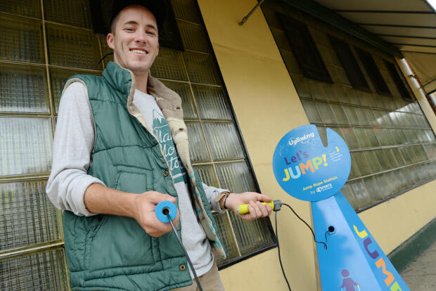 Allison Schumacher, director of academic alchemy at the da Vinci Center, oversaw the team of students who worked on the Upswing stations in the spring. The project had a variety of parameters, she said, including that the station would need to feature a retractable jump rope, be usable by either one or two people at the same time, and be free standing.