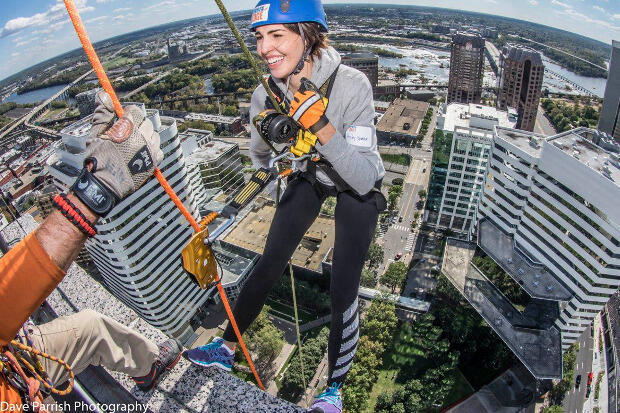 As part of a fundraising event for Special Olympics of Virginia over the weekend, Virginia Commonwealth University faculty member Hailey Spencer rappelled 25 stories down from the roof of the SunTrust Center in downtown Richmond.
