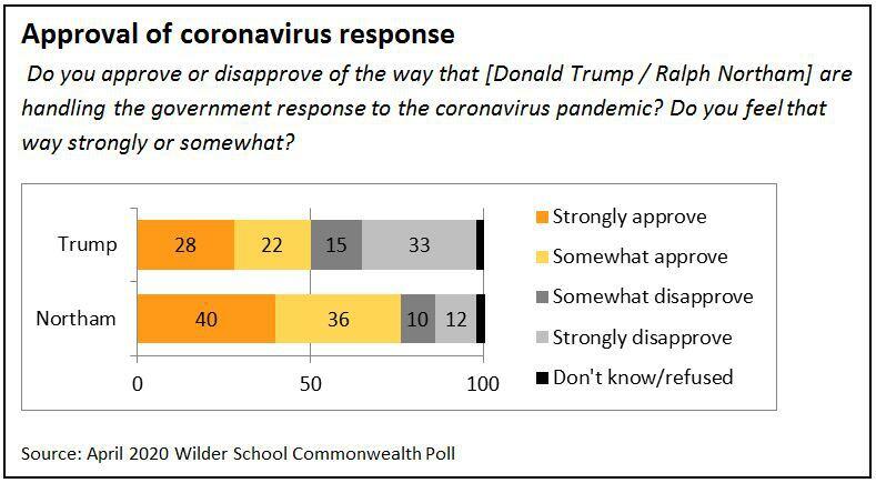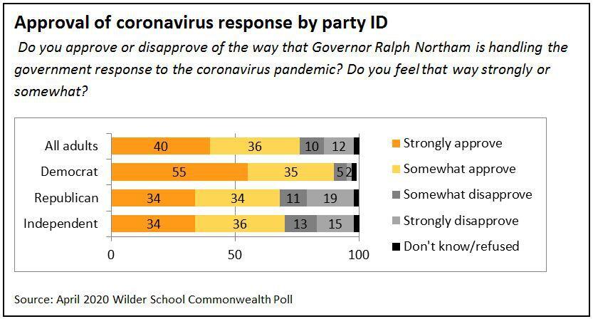 More than three-quarters of Virginians (76%) approve of the way Gov. Ralph Northam is handling the coronavirus crisis, with 40% strongly approving, according to a new statewide poll conducted by the Center for Public Policy at the L. Douglas Wilder School of Government and Public Affairs at Virginia Commonwealth University.