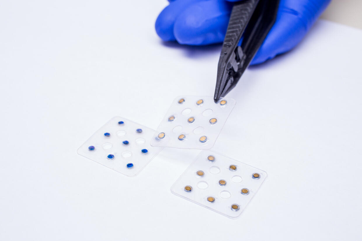 The CivaSheet has rows of blue dots embedded by the manufacturer with Pd-103 on the active side to target cancer cells and gold foil on the inactive side, which serves to obstruct all but one-tenth of the radiation from traveling through the body in order to protect sensitive and healthy surrounding tissue.