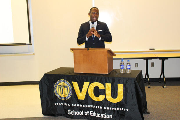 Mayor Levar Stoney encourages VCU education students to help improve Richmond schools and the lives of Richmond youth