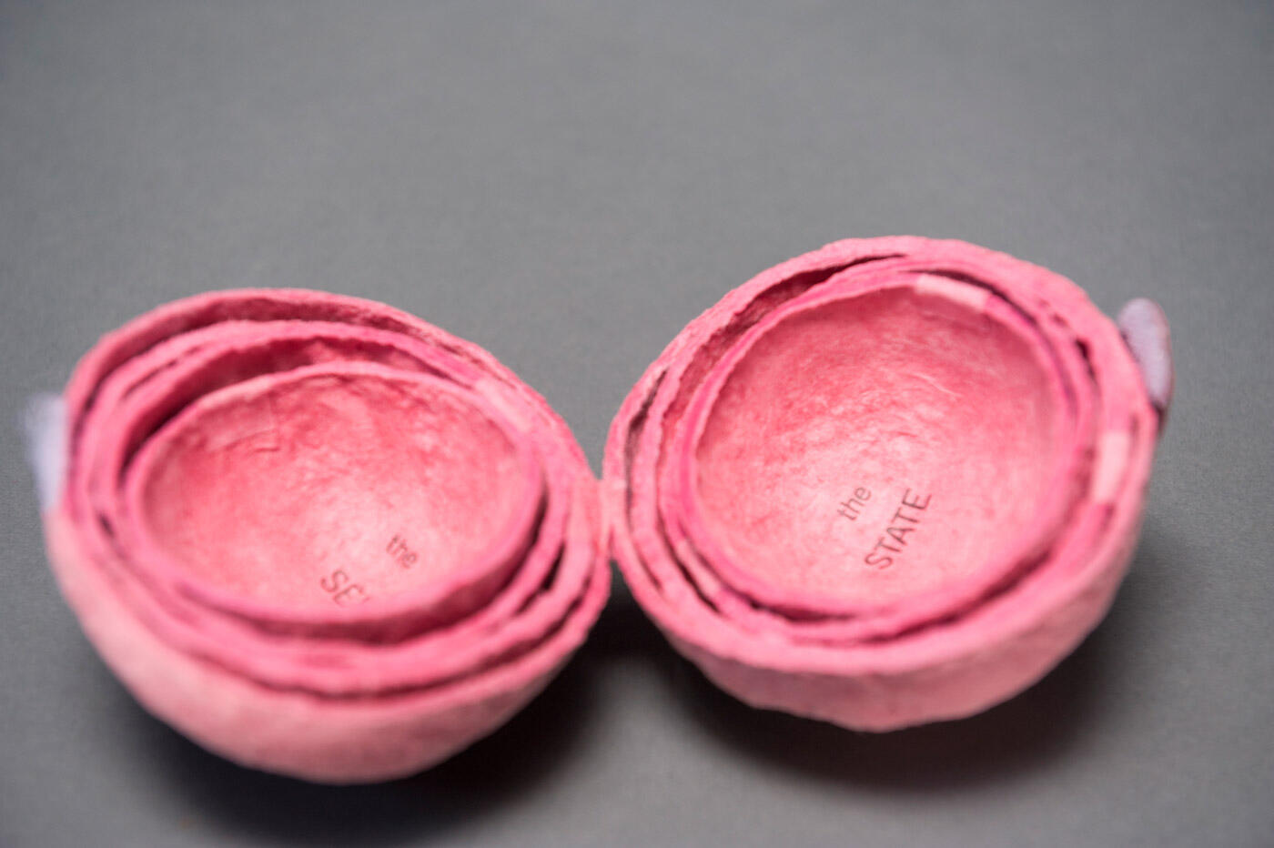 “Necessary Disclosures” is a sculptural artists’ book that “investigates the relationship between the way we interact as individuals and the way we interact as nation-states,” according to the Women’s Studio Workshop.